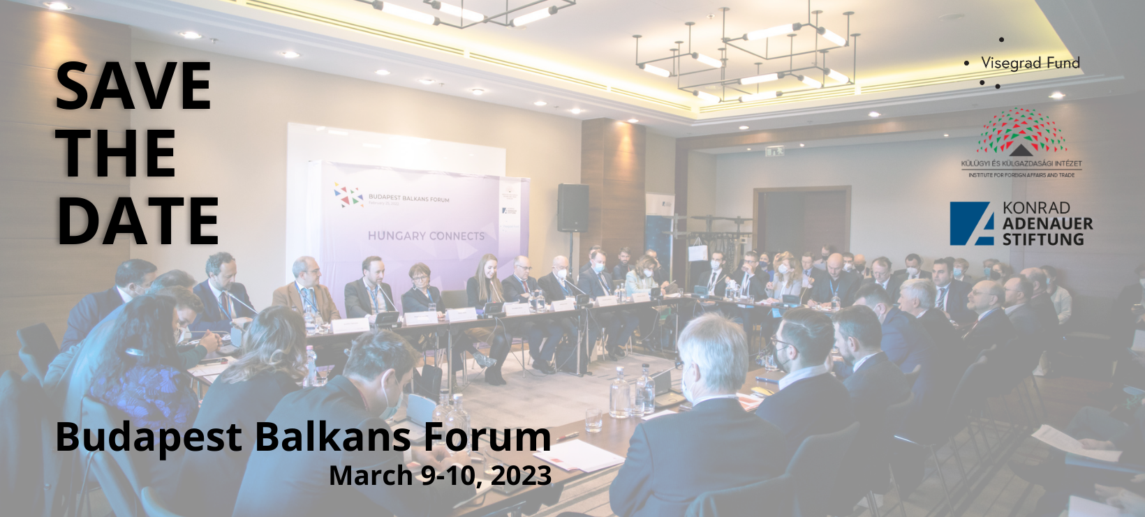 The Budapest Balkans Forum was organized for the sixth time last February and brought more than hundred experts from three continents together. Continuing our tradition, the Institute for Foreign Affairs and Trade, along with the Konrad-Adenauer-Stiftung will organize the seventh instalment of their flagship Western Balkans conference this year. The Budapest Balkans Forum–a two-day conference with three high-level public panels and six expert-level discussions under Chatham House Rules–will be held on March 9-10, 2023.