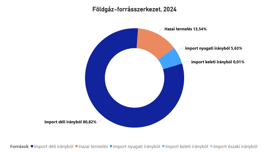 1. ábra: Magyar földgáz-forrásszerkezet, 2024; forrás: MEKH 2025[10]