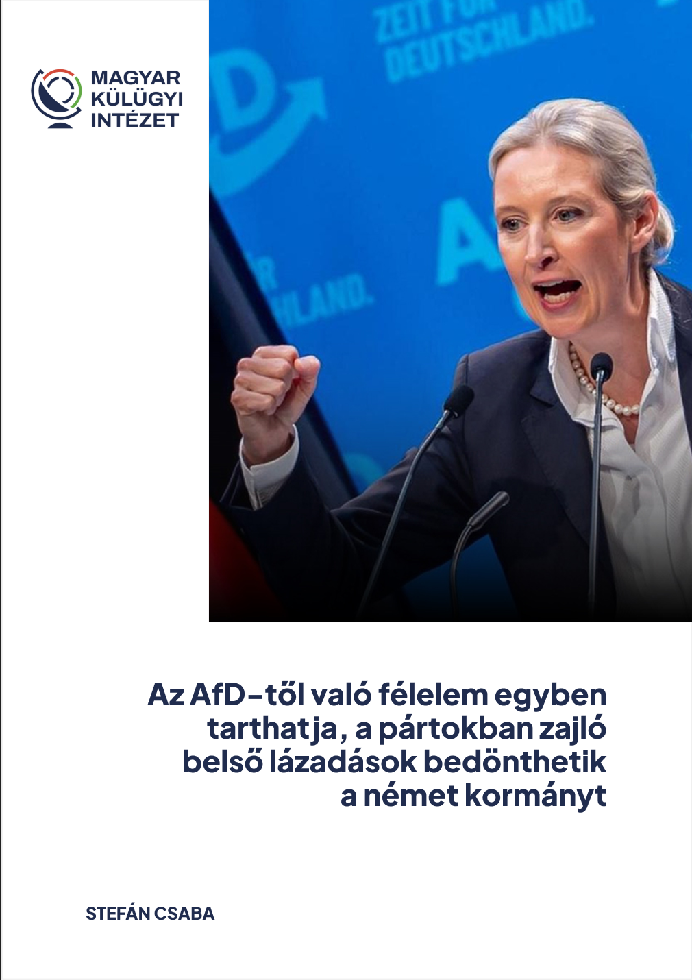 Az Alternative für Deutschland folyamatosan erősödik: az előző Bundestag-választáshoz képest megduplázta a támogatottságát, majd alig fél év alatt Németország (másik) legerősebb pártjává vált. Ráadásul jövőre újabb áttöréseket érhet el, hiszen három keletnémet tartományban (Berlin, Szász-Anhalt, Mecklenburg–Elő-Pomeránia) is választásokat tartanak, és még az sem kizárható, hogy valamelyikben abszolút többséggel, önállóan tudjon kormányozni. Ennek hatalmas szimbolikus jelentősége lenne, de az erőegyensúlyt még nem borítaná fel, mivel a tartományi kormányokat összefogó Bundesratban egy-kettőnek a vezetőjeként sem tudná az AfD egyedül a törvényeket blokkolni. A pártnak föderális szinten is át kell törnie a tűzfalat, azonban a vezetése úgy véli, hogy annak érdekében még rengeteg teendőjük van. A jelenlegi politikai környezet és a már megingó kormánykoalíció viszont kifejezetten kedvező körülményeket biztosít a munka elvégzésére. A párt által kiszivárogtatott saját stratégiája is ennek a helyzetnek a kihasználására, azon belül három kérdésre összepontosít: