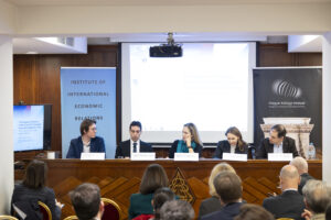 The speeches were followed by a panel discussion on “Enlargement and Western Balkans”, with the participation of Julianna Ármás and Jad Marcell Harb, Research Fellows of HIIA, Ritsa Panagiotou, Senior Research Fellow at the Centre of Planning and Economic Research, and Nikolaos Tzifakis, Jean Monnet Chair in “EU Foreign Policy and the Western Balkans”, Professor of International Relations at the Department of Political Science and International Relations of the University of the Peloponnese, moderated by Csaba Stefán. The panel started with a debate on the most pressing challenges facing the EU and the related priorities of the Hungarian EU Presidency, highlighting the structural problems of competitiveness, defence policy, demography and migration, as well as the dilemmas of enlargement and internal reform; underlining the potential role of the Western Balkans in addressing these challenges. Julianna Ármás argued that the integration of the Western Balkans into the EU will reveal further challenges to be tackled, and that internal EU unity is essential for the enlargement of the Western Balkans. Ritsa Panagiotou spoke about the stabilising role of EU integration in the region, pointing out that EU membership is still an important foreign policy tool for the EU. Nikolaos Tzifakis argued that the EU should not reward the erosion of democracy and disregard for EU norms but should act against regimes with authoritarian and irredentist tendencies by suspending the accession process or even imposing sanctions.