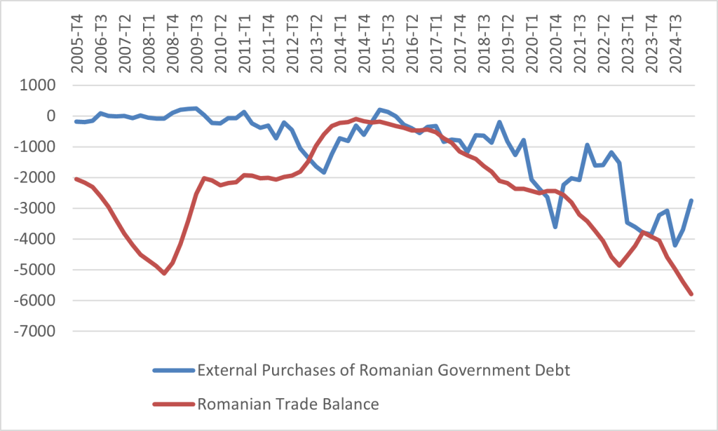 Romania’s indebted and imbalanced economy seems to have undergone two phases. In the first phase, during the mid-2000s, the country leveraged its position as a close NATO ally of the United States and Europe to attract FDI that allowed it to live beyond its means. This phase reached a crisis point in 2012, after which Romania tried to rein in its overspending. The second phase began around 2020, when the country started issuing enormous amounts of debt abroad. There are good reasons to think that this arrangement is far less stable than the previous FDI-based borrowing. It also leaves open the question: will Romania be as attractive to foreign borrowing markets when the United States starts to retreat from its position in Europe and pivots to other theatres?